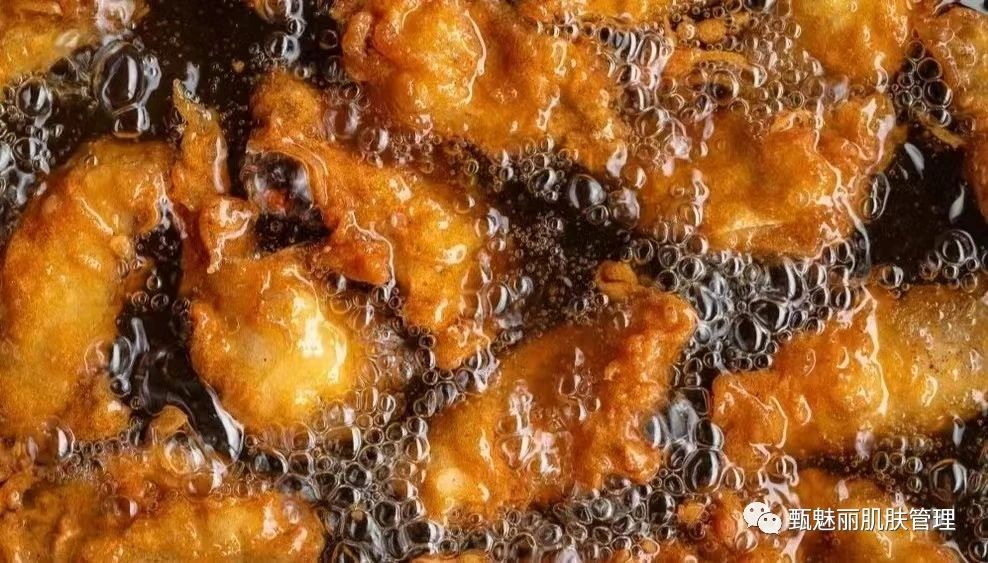 本来螨虫就很喜欢吃油脂,常见的炸鸡火锅、奶茶蛋糕等刺激性食物在制作过程中油脂经过高温加热会异化构成反式脂肪,过多摄入会造成体内的外源性内分泌失调,导致皮肤油脂分泌加剧,而油脂分泌频繁则为螨虫提供了生存条件。